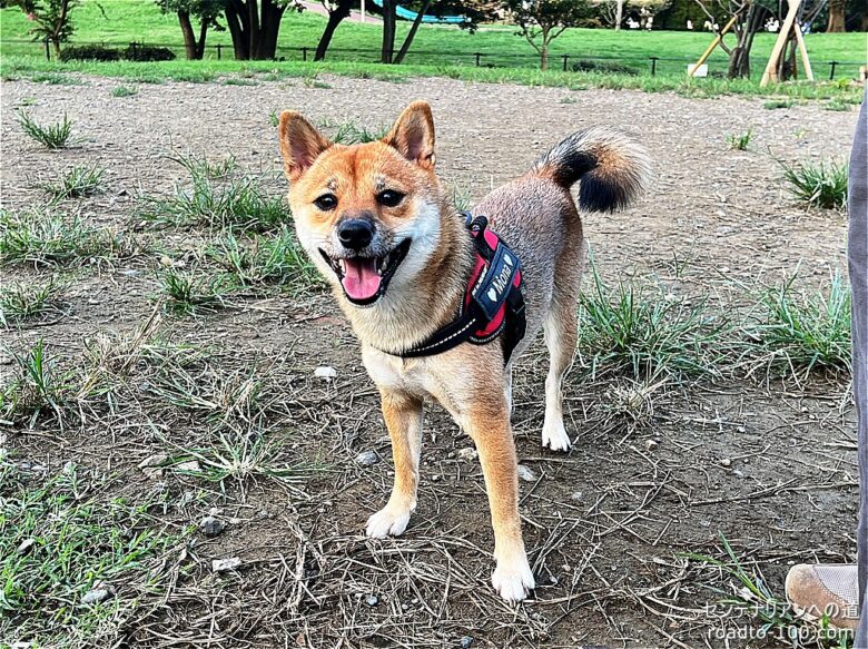 ハーネスを着用している柴犬のワン友にアドバイスを受け、最終的に落ち着いたタイプがこちらだ。